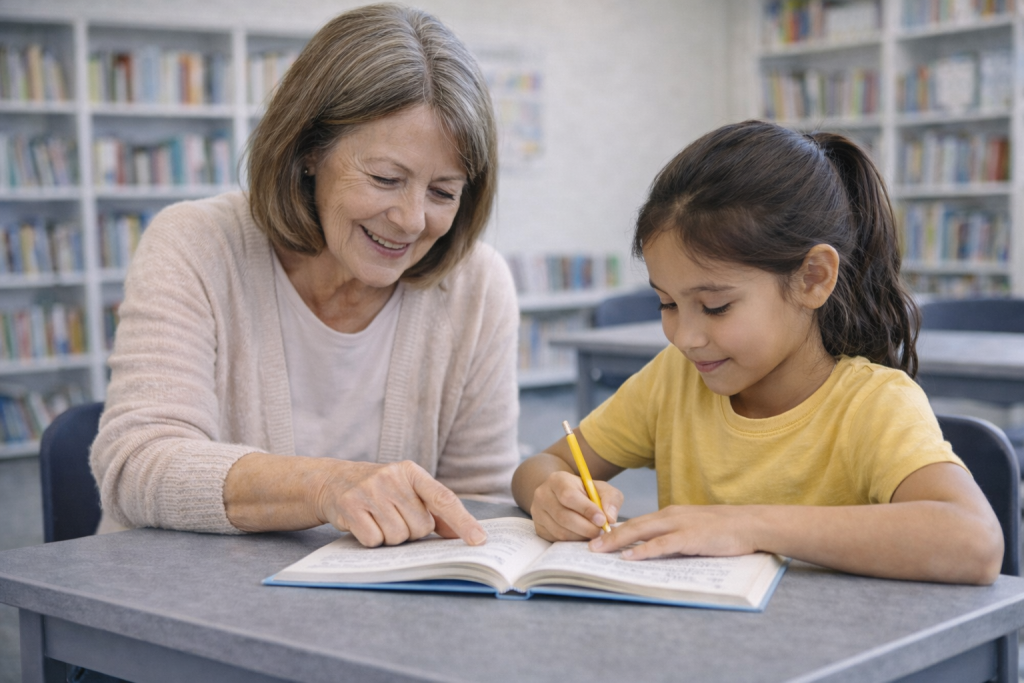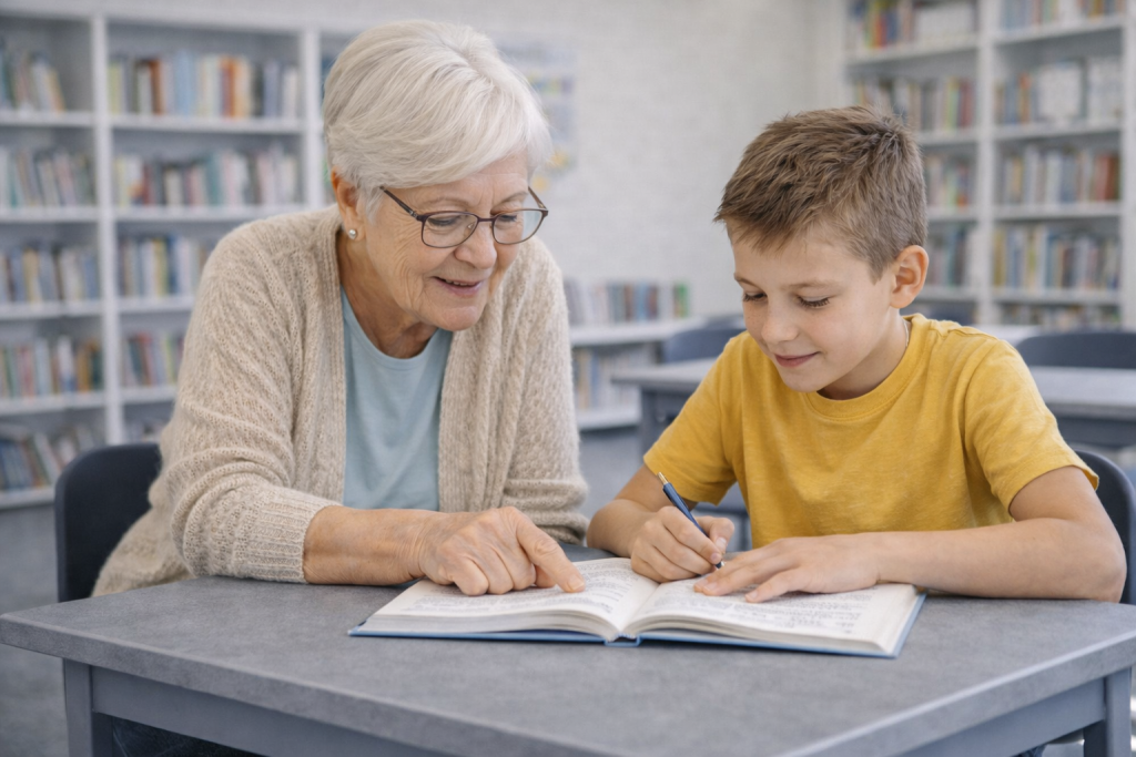 Begleitung von Kindern im Grundschulalter beim Lesen, Sprechen und Verstehen. Im Mittelpunkt stehen Freude an Sprache, Beziehung und regelmäßige gemeinsame Zeit.